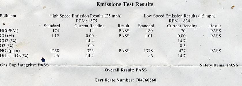 So I'll be out almost $300 dollars. And before you ask, I have replaced/fixed everything emissions related on this car, it simply never passes. HC is ALWAYS too high. That was with a gallon and a half of alcohol, air pump running, and a new cat. Thats why I don't want to go through any of this again next year.