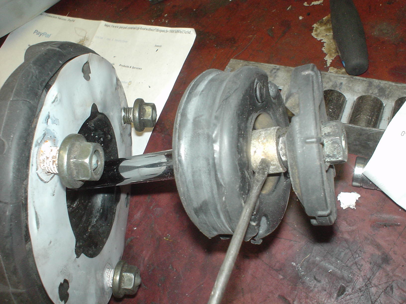 I see a lot of chewed up rubber in that front shock assembly.