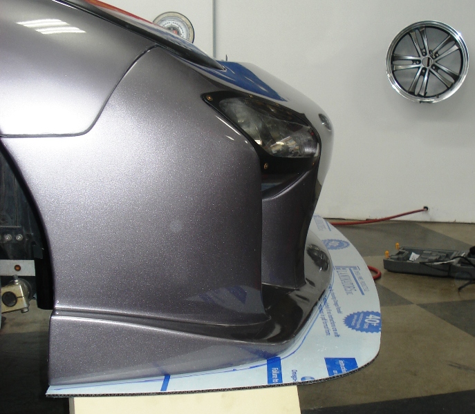 Made some more modifications to the alumacore splitter to clear the swaybar mounts and shorten it to be at the cenerline of the front axles. Overall it looks good. Also in the process of making the aluminum frame mounting. I will be making chasss brackets that will be using the OEM tow hook bolt points.