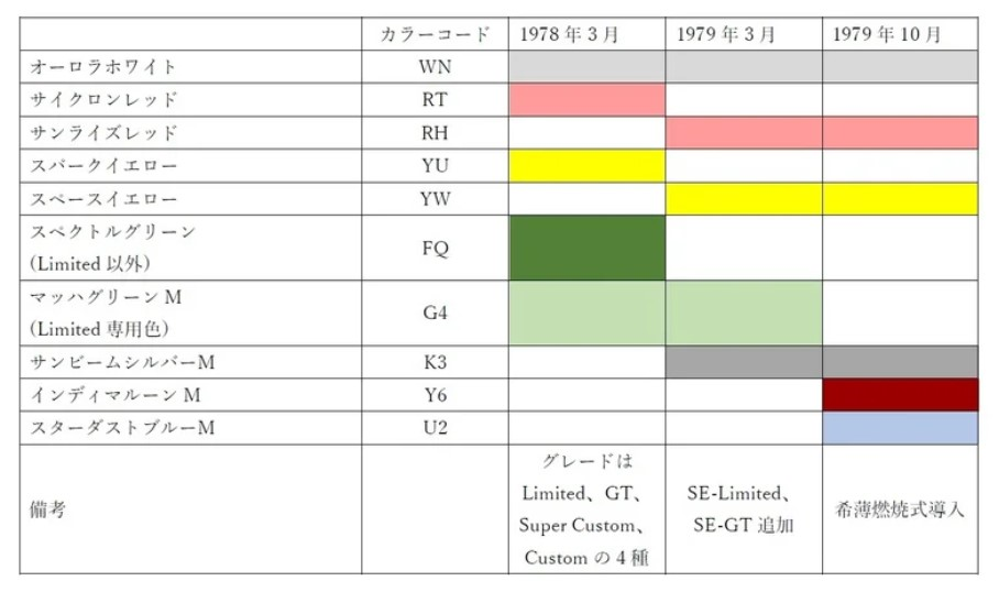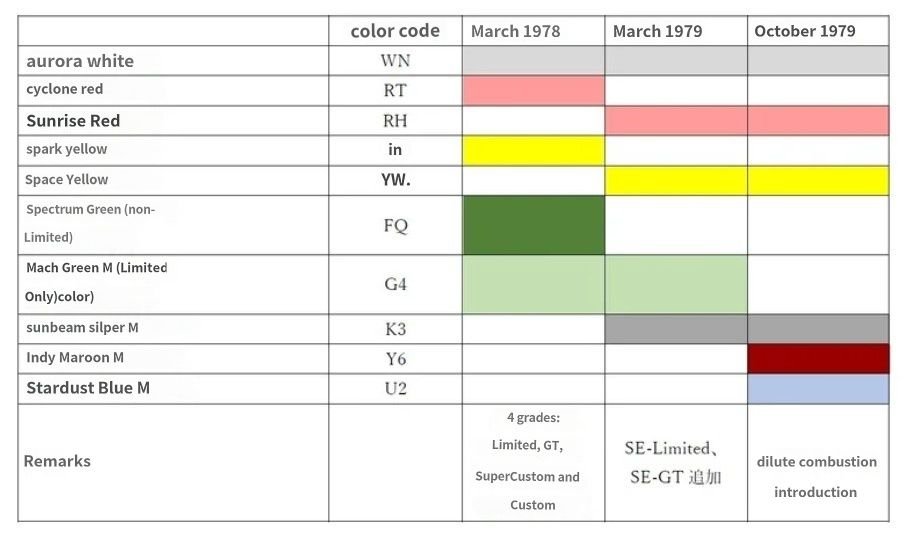 However an actual paint code for Spectrum Green has been like a big foot sighting. The guy I found who also has a car this color, contacted someone in Japan and had him translate this chart (also from a brochure I believe) and the description next to the FQ color came back as Spectrum Green. So, I believe we are saying the same thing. Just that if the translation is right, Spectrum Green might be code FQ. Problem is, I've been unable to verify FQ as an official code from any other source or come up with an actual color chip image for comparison.