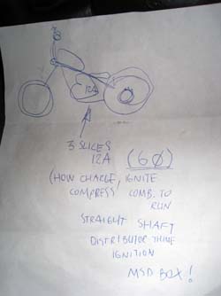 i have a trans from bsa. the bsa motor was blown with pistons knocked out via head. i would mount motor one side, trans and maybe wide belt to wheel on the other to try to counterbalance the weight. maybe i would p-port the rotor housing for dirrrect injectio (and i have 2 mikunis from bsa motor).