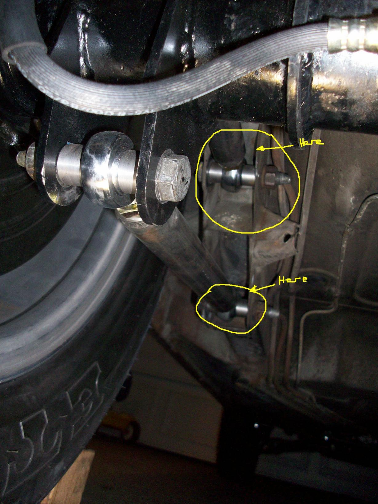 It also would be a good idea to strengthen the brackets for the links on the stock frame as circled in this pic. As you can see they are pretty thin and weak. I was going to do it but I wanted to dial the rearend in first. Those stock brackets will not handle very many 10k launches on slicks for very long.