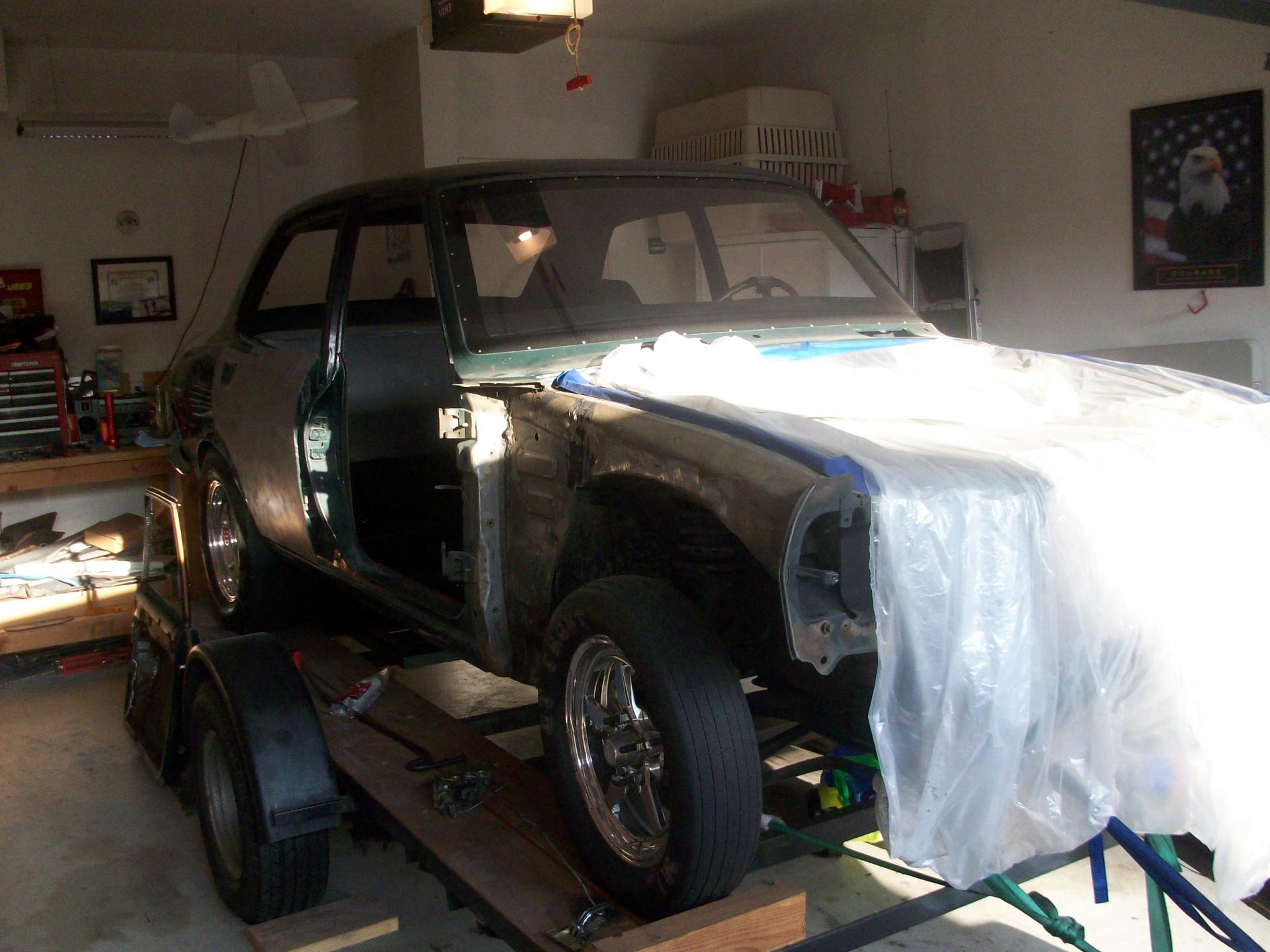 Well, it's been a long time since I've updated this thread. I finally decided to do the body and paint on this turd, so I have been trying to do it myself. I have never done bodywork before, so I bought a hammer and dolly set and checked out some video's on the internet and went at it. It took some practice but anyone can do it. I first have been stipping down the doors and fenders and doing getting out as much dents as I could. Man oh man was there alot of body filler on this car. I think I am going to shed several pounds form this.