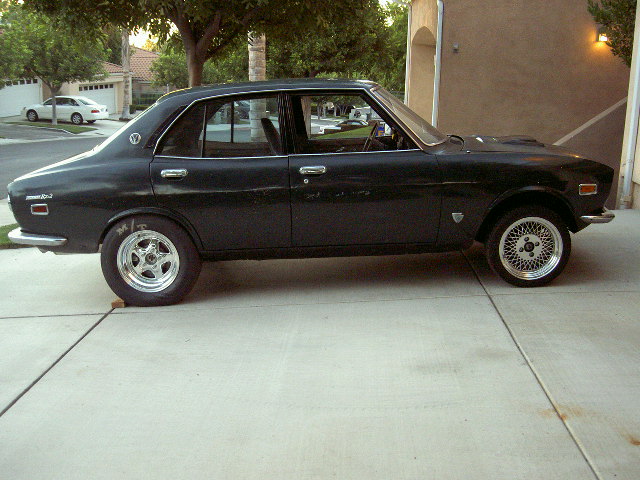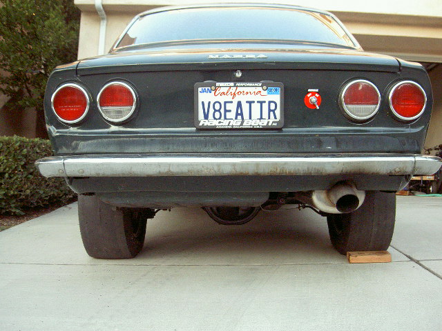 Well, I have been up since 6 am and have been running around all day trying to get this driveshaft sorted out. We tried everything to try and make the Chrysler 904 yoke work but it wouldnt'. So after several attempts to mill tho OD on the yoke and failed, I drove all the way to Garden Grove and picked up the upgraded RX7 TII replacement yoke with the larger u joints-7260 and the guys at Inland Empire drive line made me a complete new driveshaft. I can't recommend these guys enough. Total opposite of Hoopers, these guys were so helpful and without them I wouldn't have got my car ready for Sevenstock. We are still working on trying to make the larger yoke/u joints)(1310) work and if we figure it out I'll let you guys know. Well the only thing I Jimmy rigged was the trans. crossmember and my tranny is puking but this will get my car to sevenstock. Here's some pics of it on all fours.