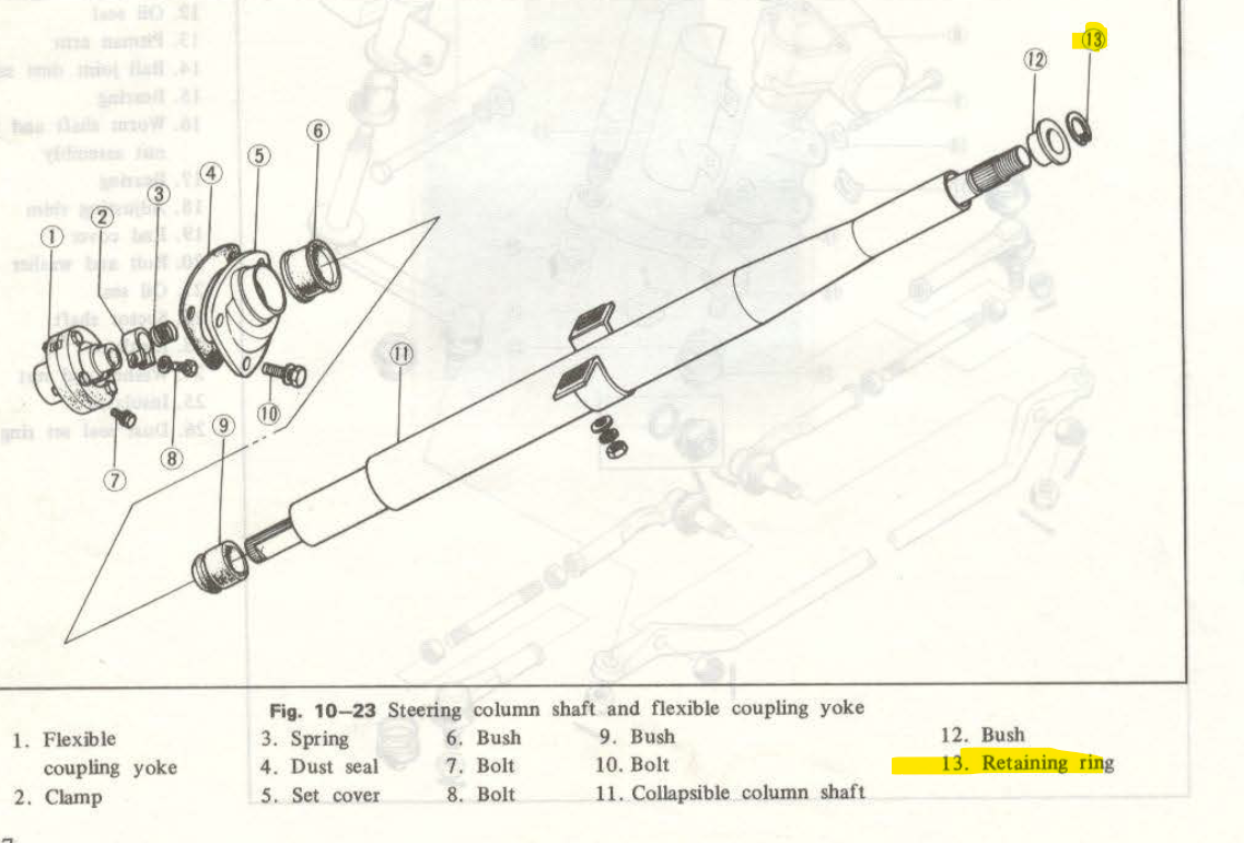 2. I have in and out play of the steering wheel. The entire thing is moving back and forth along with this steering coupler in the engine bay. is this a common fail point? maybe a bushing inside of that coupler is bad? Also i already replaced number 12 in the diagram. its just the in and out movement that im having now.