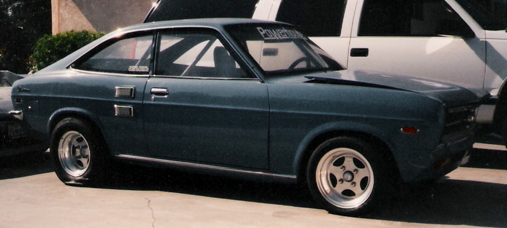 Pic of my 1972 Datsun 1200 powered by a full J bridge , holley carb with NOS, TII trans, Ford 9", Bogart rims...... was street driven till I decided to make it full on drag.