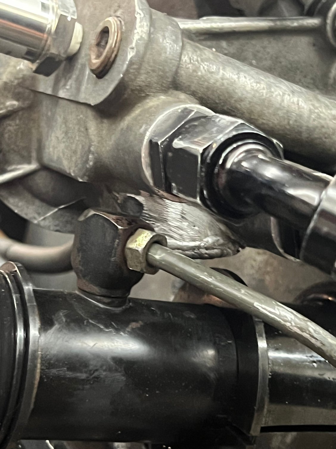 Tore the steering rack out to replace the absolutely SACKED 33 year old oil soaked steering rack bushings but when I pulled that i found the mounting clamps to be bent but after inspecting it looks like they were bent on purpose to slightly offset the steering rack, now its reinstalled without sacked bushings and straight mounting clamps the steering rack hard line fitting is making contact with the already modified oil filter housing. Looking at it closely I am seeing that the steering rack fitting as been making slight contact with the oil filter housing during drivetrain torquing/twisting.