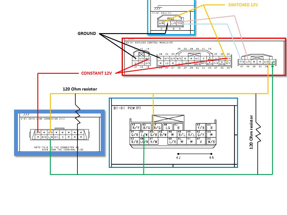 as mentioned before you will need the keyless module, and (optionally) the OBD port. Here's the wiring schematic for those two items: