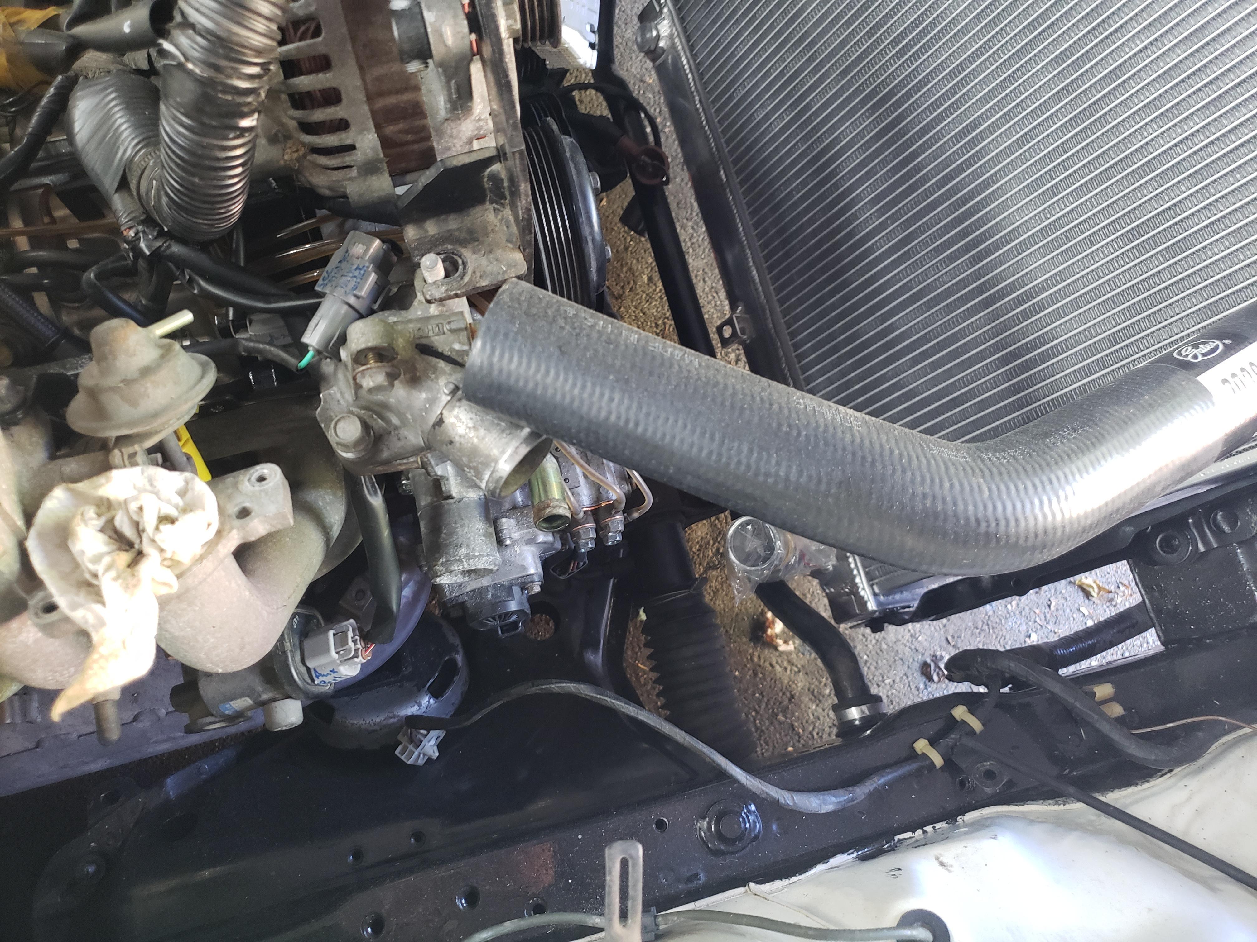 I went a bit overboard and made a new thermostat cover, but you don’t really too. The angle the radiator hose comes in at just won’t match up to the cover very well, but the FC upper hose will still fit.