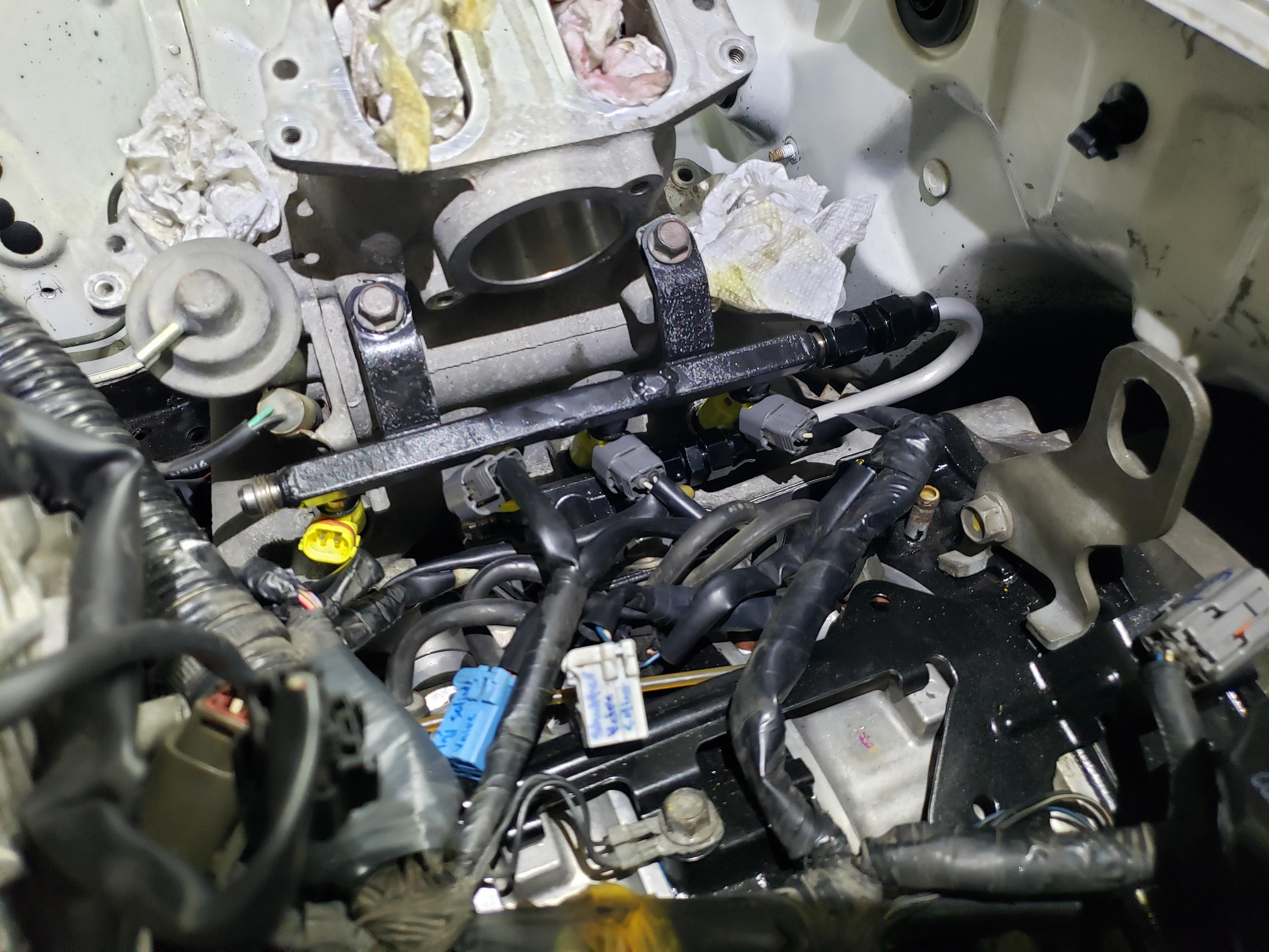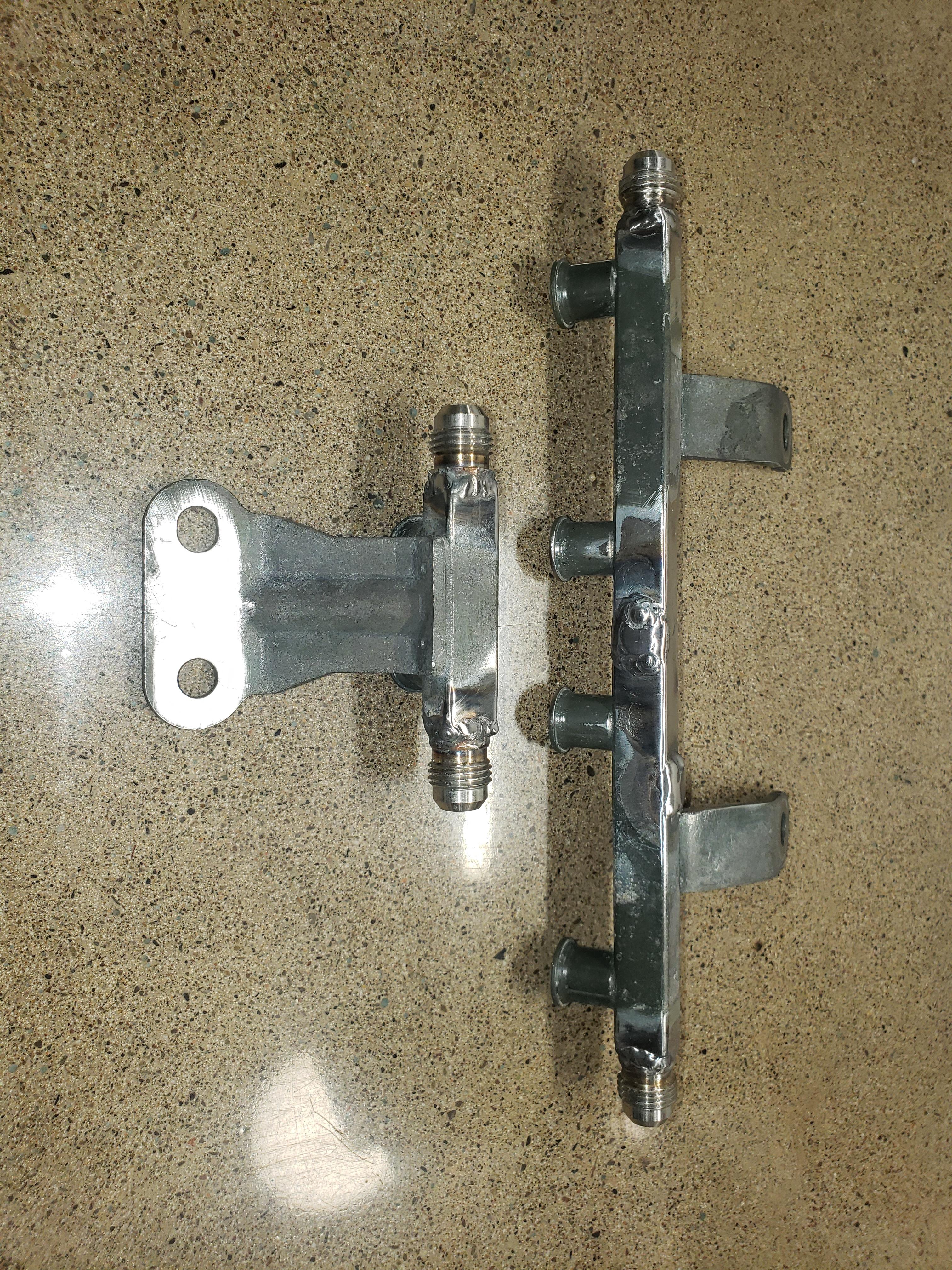 Or you can buy aftermarket fuel rails on ebay or the like. The primary rail and secondary rail will need to be connected together at some point if you run a return style system. I opted to make a hardline to connect the two together.