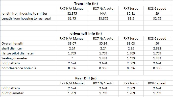 If you opt to NOT use the RX8 trans, you’ll likely need a turbo FC trans as the flywheel on the MSP engine is quite large (larger than the FC turbo flywheel even). I can’t comment on fitment of the driveshaft either, but my guess is it will be a bit long. If you’re ambitious this has all the info you should need to mix and match trans and driveshafts