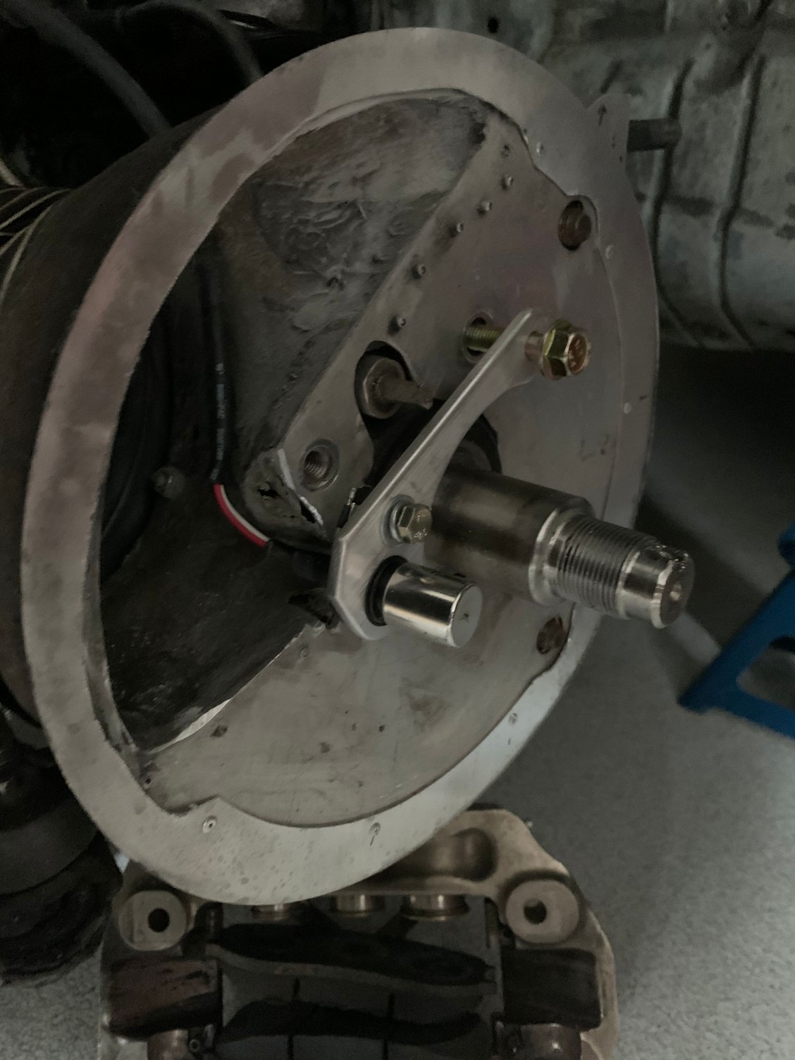 FB track car recently swapped the 12A stock port with fuel injection to a 13B 6 port BP and while I run 13" wheels this is my upgrade for the brakes. Used Home Depot 5" duct caps and 3" exhaust tubing with Summit Racing brake cooling hose.