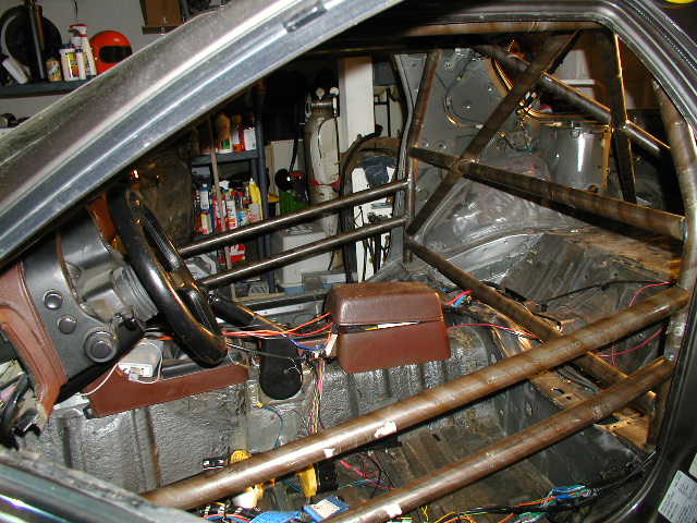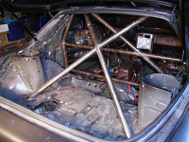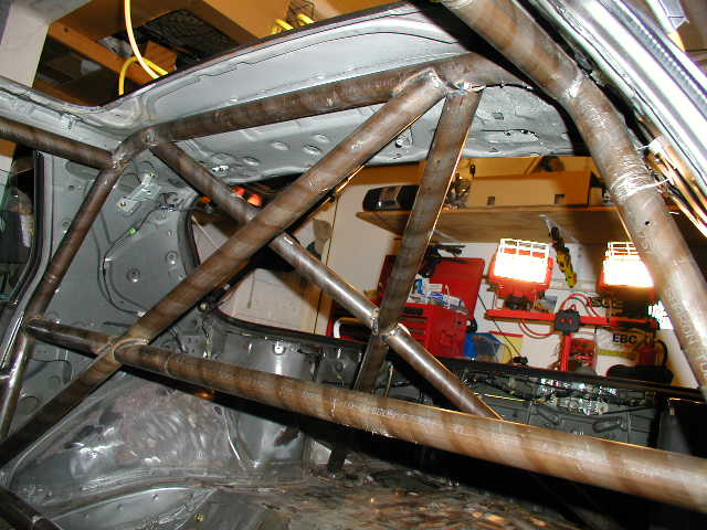 The current cage that I'm doing has "straight" main hoop braces from the intersection of the front downbars back to the rear pads (around the spring mount/coil mount brace) and then an X from the upper door bar mount location to the rear pads. This ads quite a bit of chassis rigidity, keeps the weight low and doesn't clutter up the rear view.