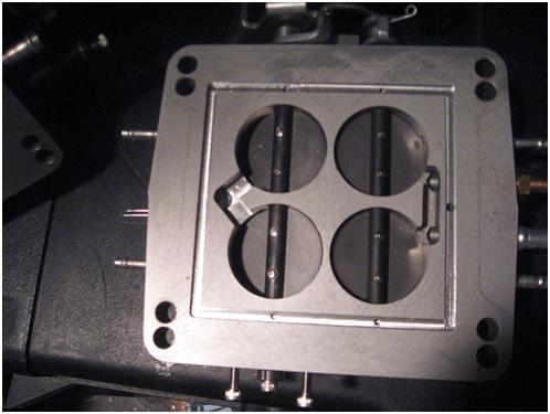 4 injector Throttle Body, with ported and manifold vacuum connections. 3" high, top matches 4.80" plenum, 750+ CFM. Fits Holley and Squarebore carburetor bolt patterns. Can be bored to 1000 CFM. TPS and IAC can be added with machining. Simultaneous opening blades; can be modified for progressive opening