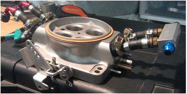 In this configuration the Primary injectors are used at idle and all of the injectors are used in boost. When driven in boost fuel leakage would occur from the throttle shafts. At idle there was no leakage because all of the fuel was injected after the throttle plate.