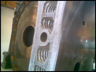 Barry, as pointed out by Crispeed in the 4-rotor thread, those reliefs around the through bolt bosses appear in the FD rotor housings, but only on that lower one near the leading plug. Total speculation here, but the housing flex would be higher in the leading plug area, no? So I'd think first off that the other reliefs would matter less with regards to how they would allow housing flex outward because the pressure in those spots would be lower. However, the cooling needed in those spots is less also......