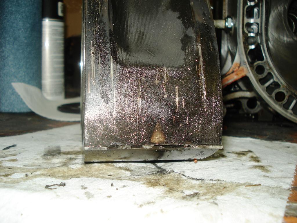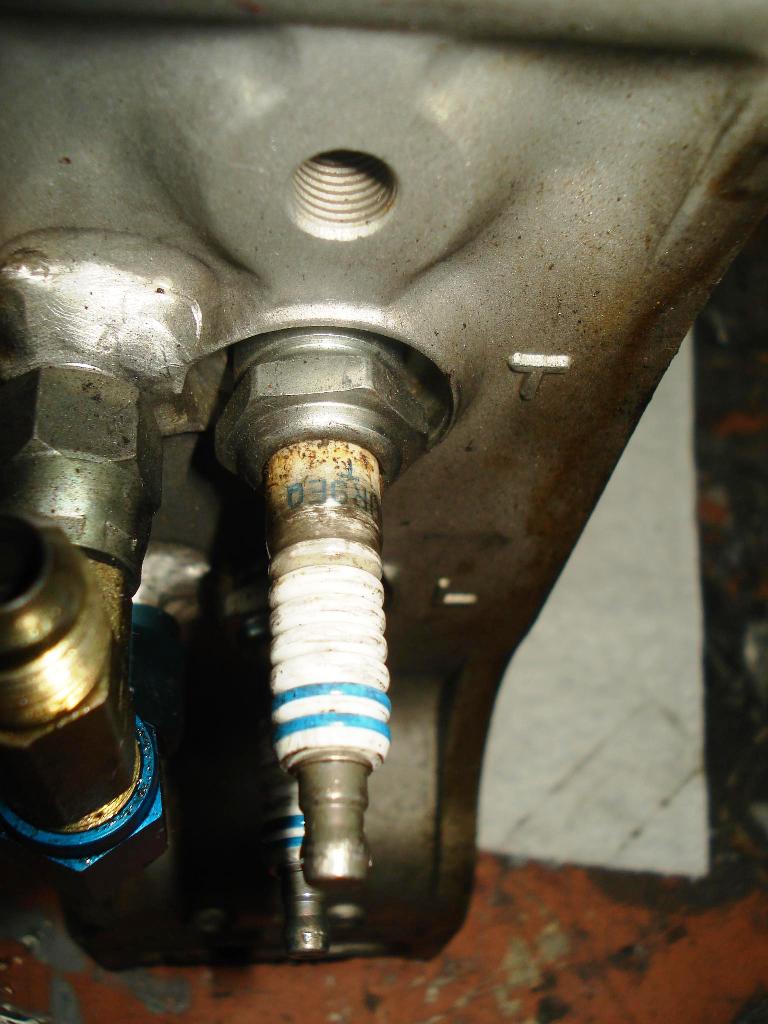 Here are pictures of the blown motor - roughly 5000 miles of usage. Note the plug tips are well used due to fuel economy tune where the car ran at 17:1 AFR during cruising at 3000 rpms - 75mph. Roughly 1500 miles worth.