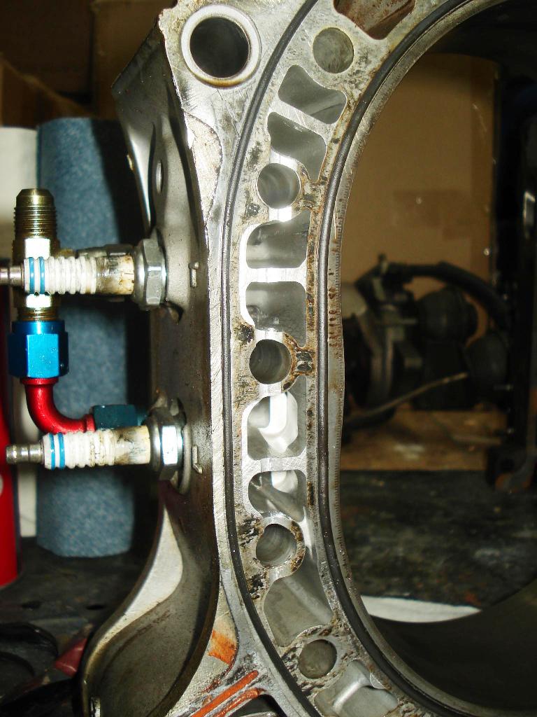 Adam, I am amazed that the front rotor housing looks so good in the area of the plugs! It appears that somehow the apex seal broke and then tried to escape