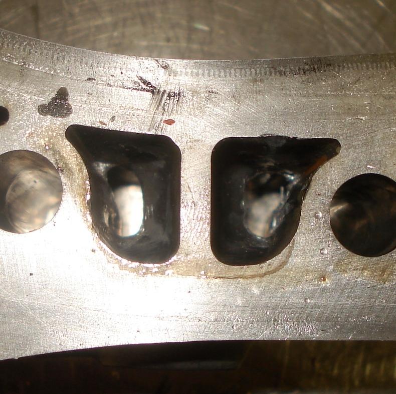 through the exhaust port. The lifting and carbon stains on this rotor housing seem minimal. I would have thought that the rear housing would be more likely to break the apex seal
