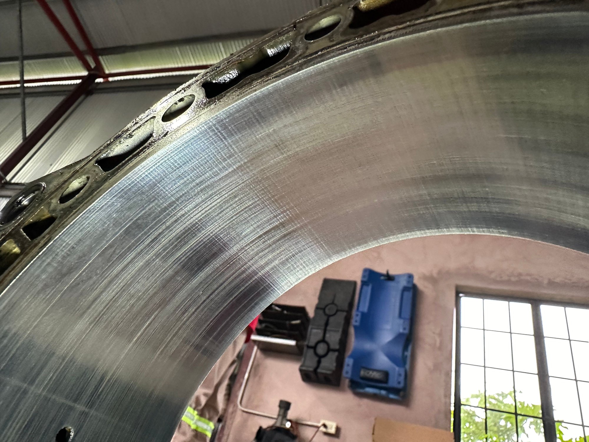 To me it seems that the rear rotor with the coolant leak looks worse. I am wondering if the coolant messed up the lubrication of the premix.