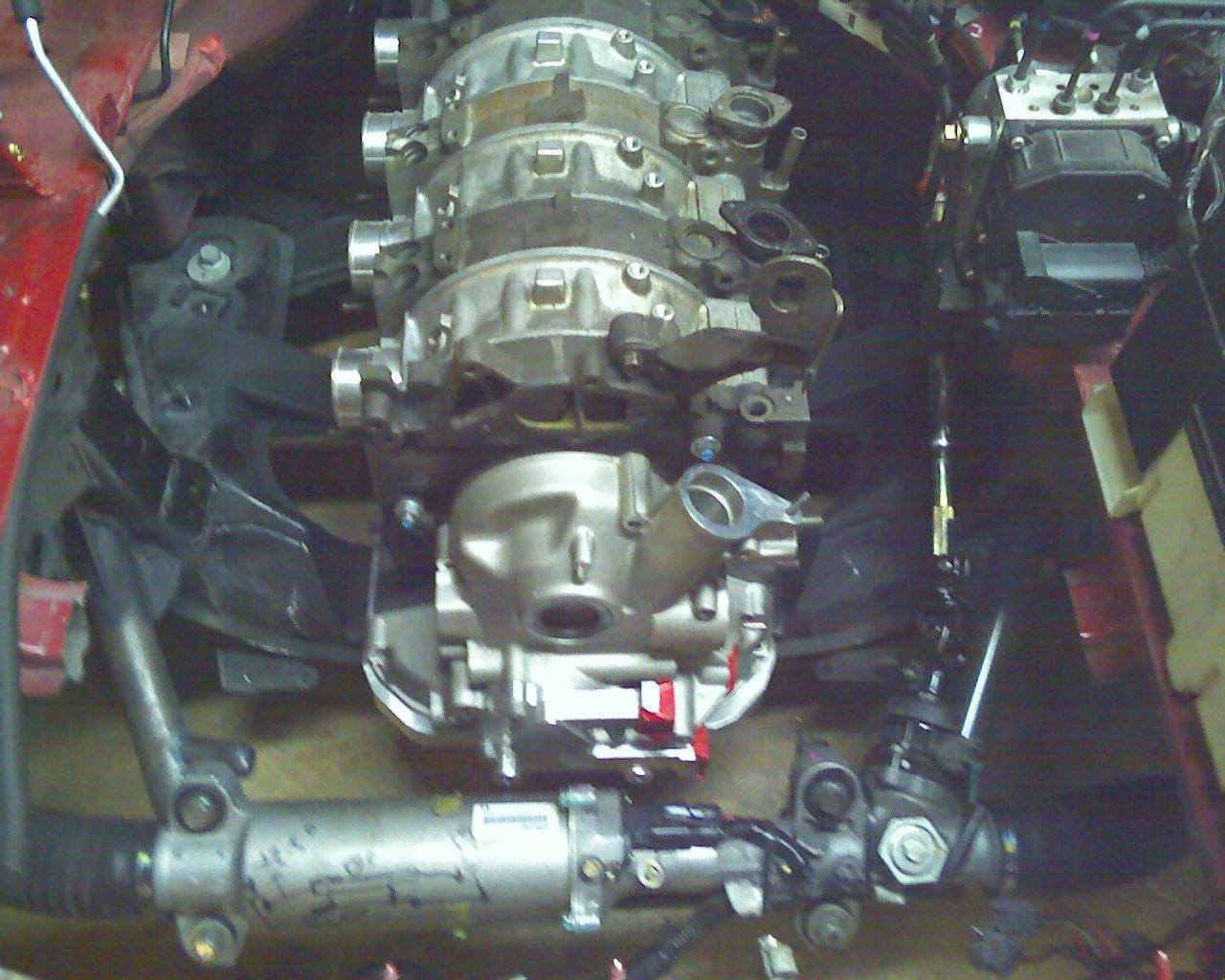 Motor and tranny are mounted in position. The crossmember modifications, steering rack and shaft are done. Working on the intake manifold presently.