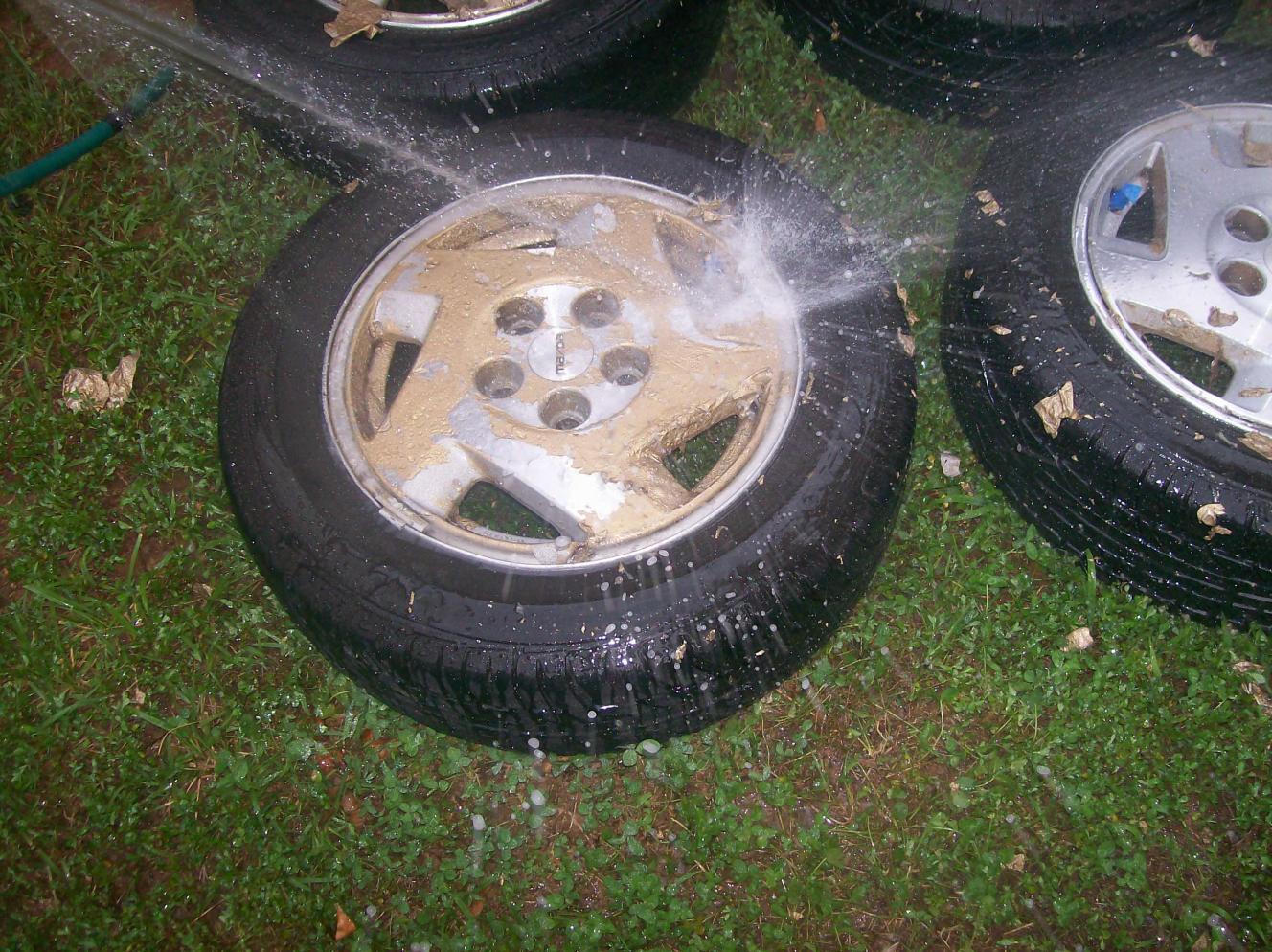 OMFG look what I did!! I paid $60 for these when I got that lip and they look awesome now. Brand spankin new tires. Too bad I've got 3 drivers side wheels and only 1 passenger one though...