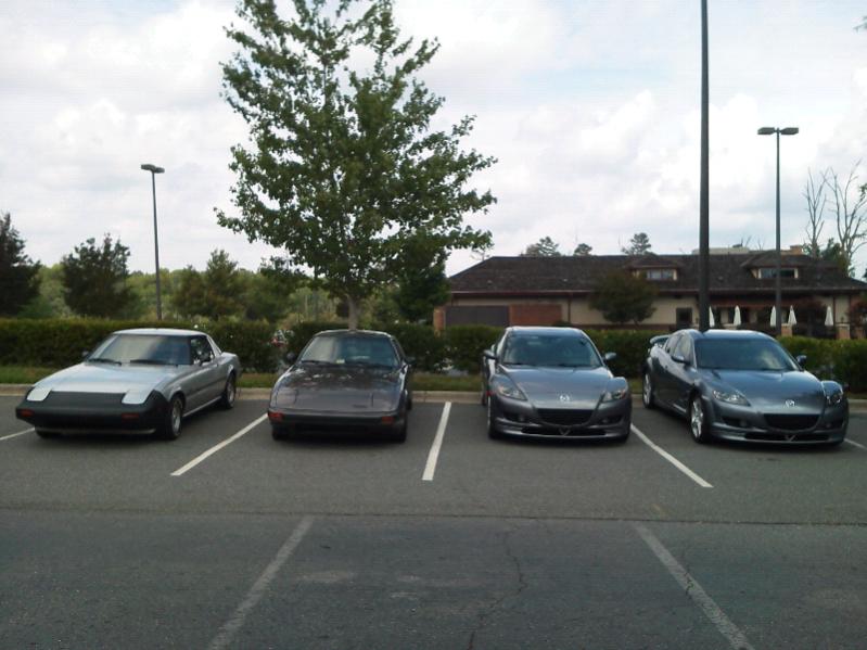 I won't be there. =D Surprised? I was, however, with Tim up at Charlotte cars and coffee on Saturday. There were 3 first gens! One was even a 2+2. The guy had just gotten it running after 8ish? years in the pasture. I'm trying to attach a picture and this new RX7app on my phone keeps crashing. ( I'm also trying to get my post count up)