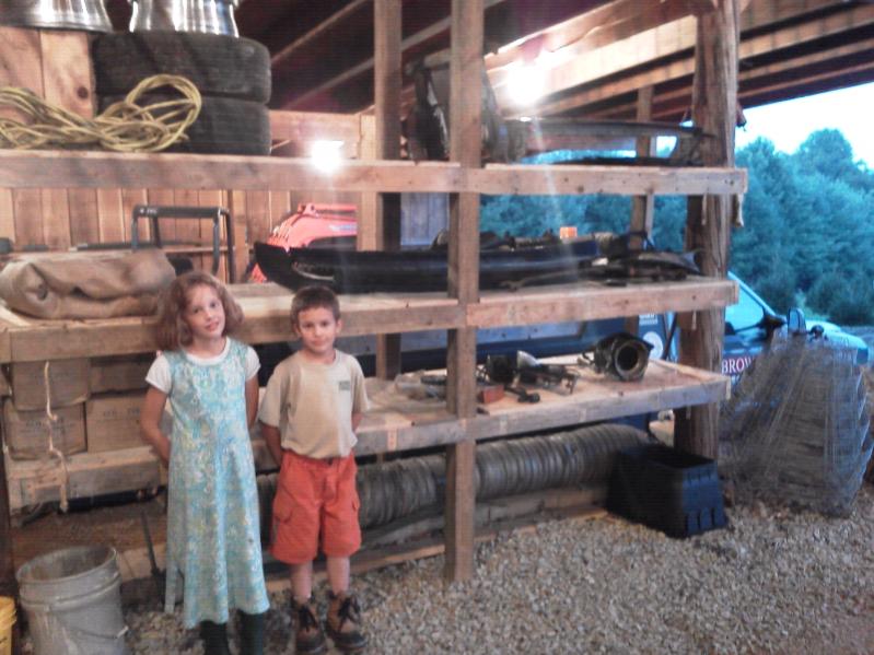 I've started tearing apart the parts car, an '84 GSL automatic. I'm hoping to get a rear axle swap completed before Oct 27th! I even built new shelves in the pole barn to handle the new "clutter". I enlisted the troops to help me carry parts.