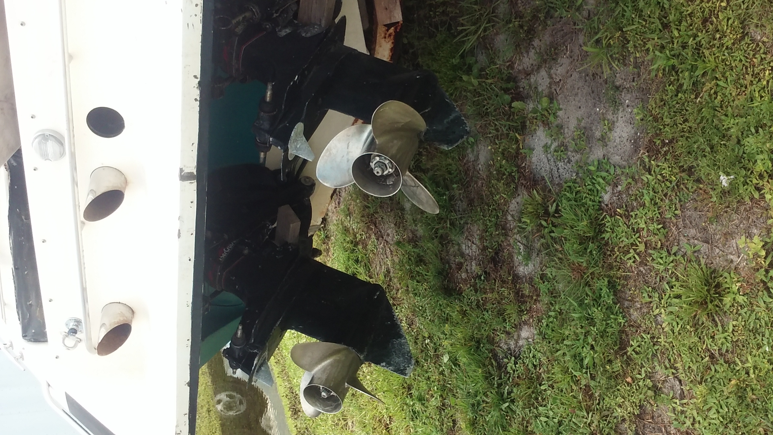 1987 wellcraft nova iii, 28', lots of room for two rotary engines. got it for next to nothing, though the starboard small block 350 was gone and the alpha 1 drive had been taken apart and loosely put back together.
