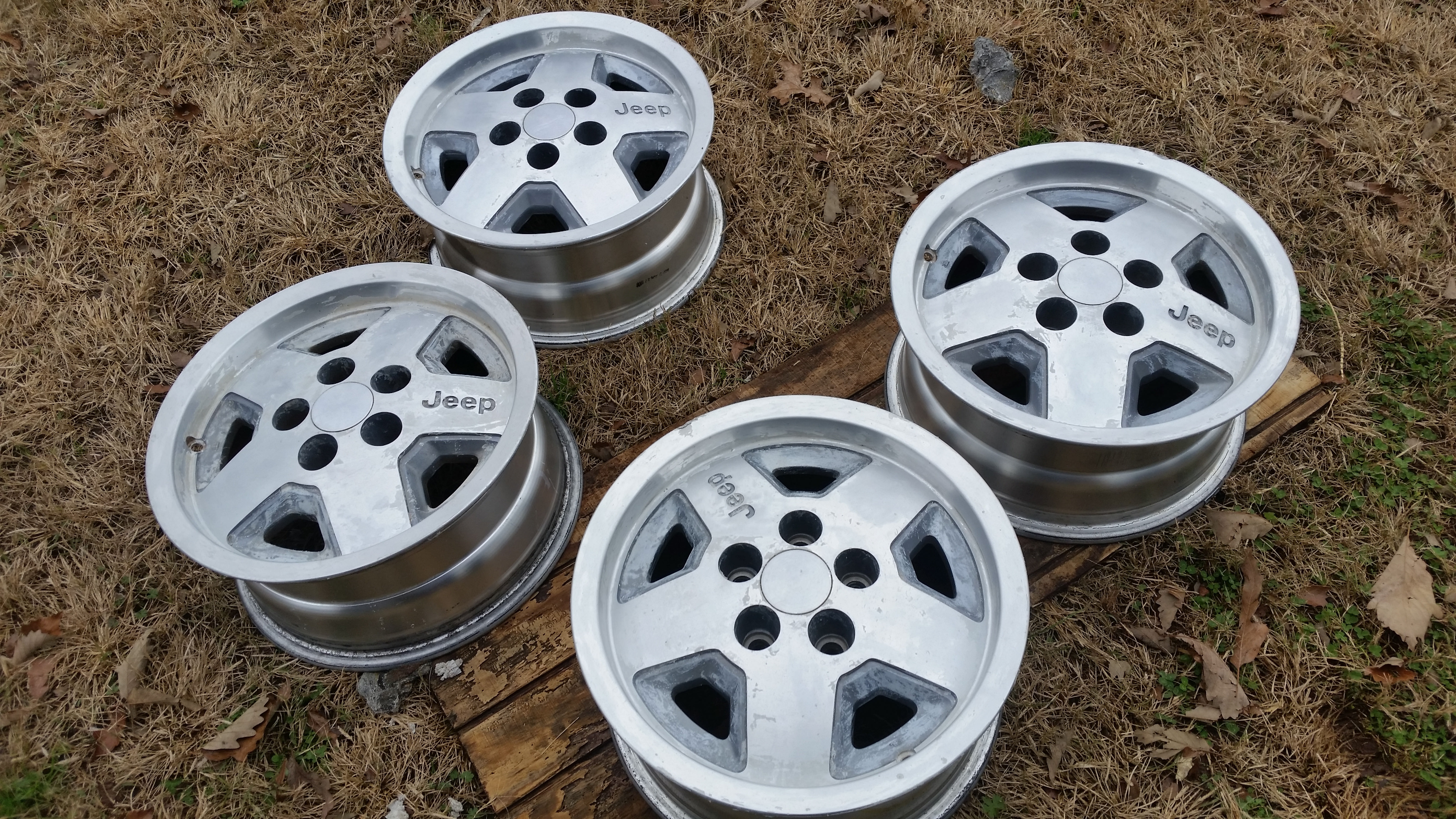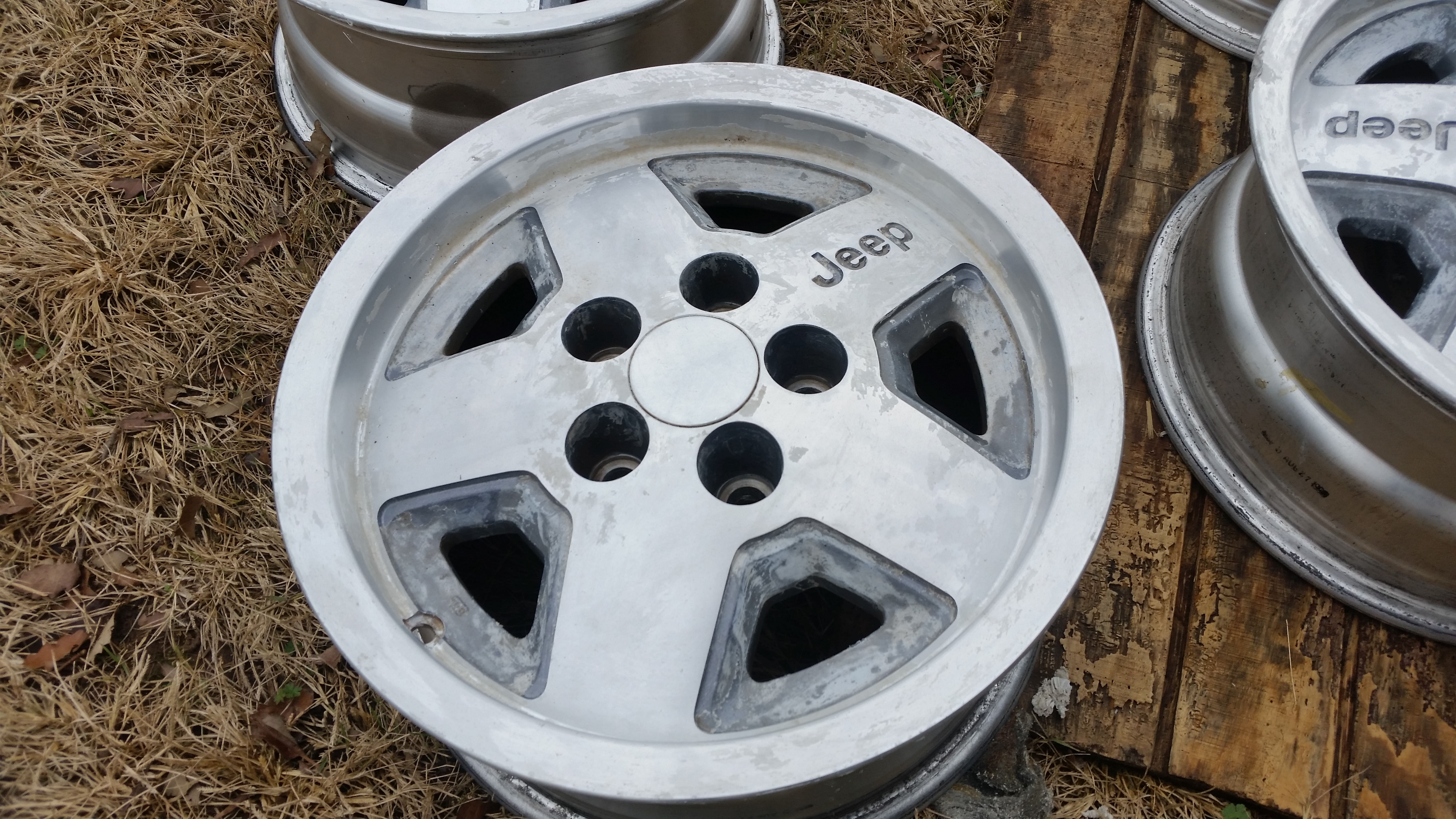 I have the 5 original polished bullet hole wheels that came on it, no tires on 4 of them and one on the spare. I've been meaning to put them on craigslist but have been dragging my feet. If you're interested in the set I can make you a heck of a OGTA deal. They will fit Cathy's Jeep just like her current ones.