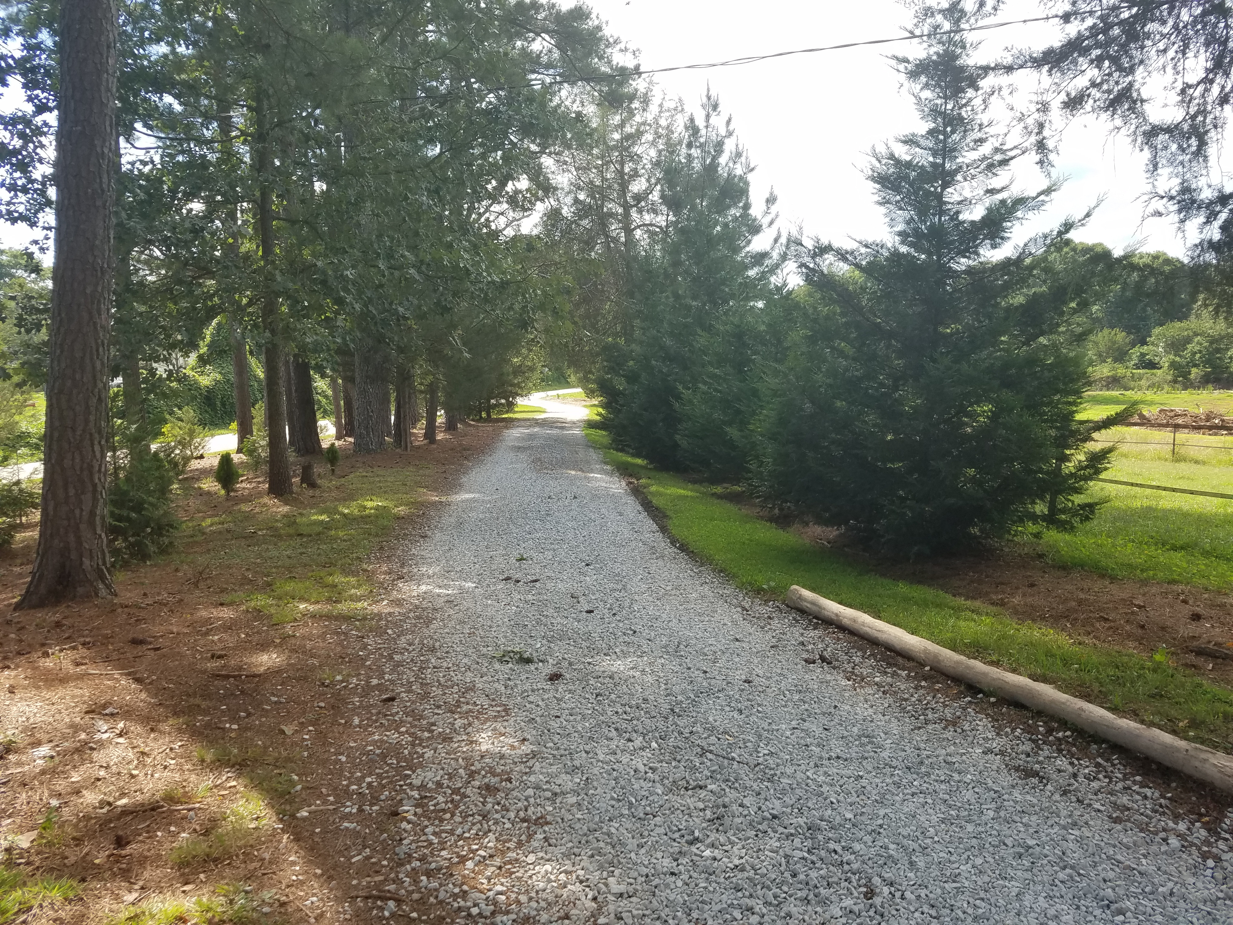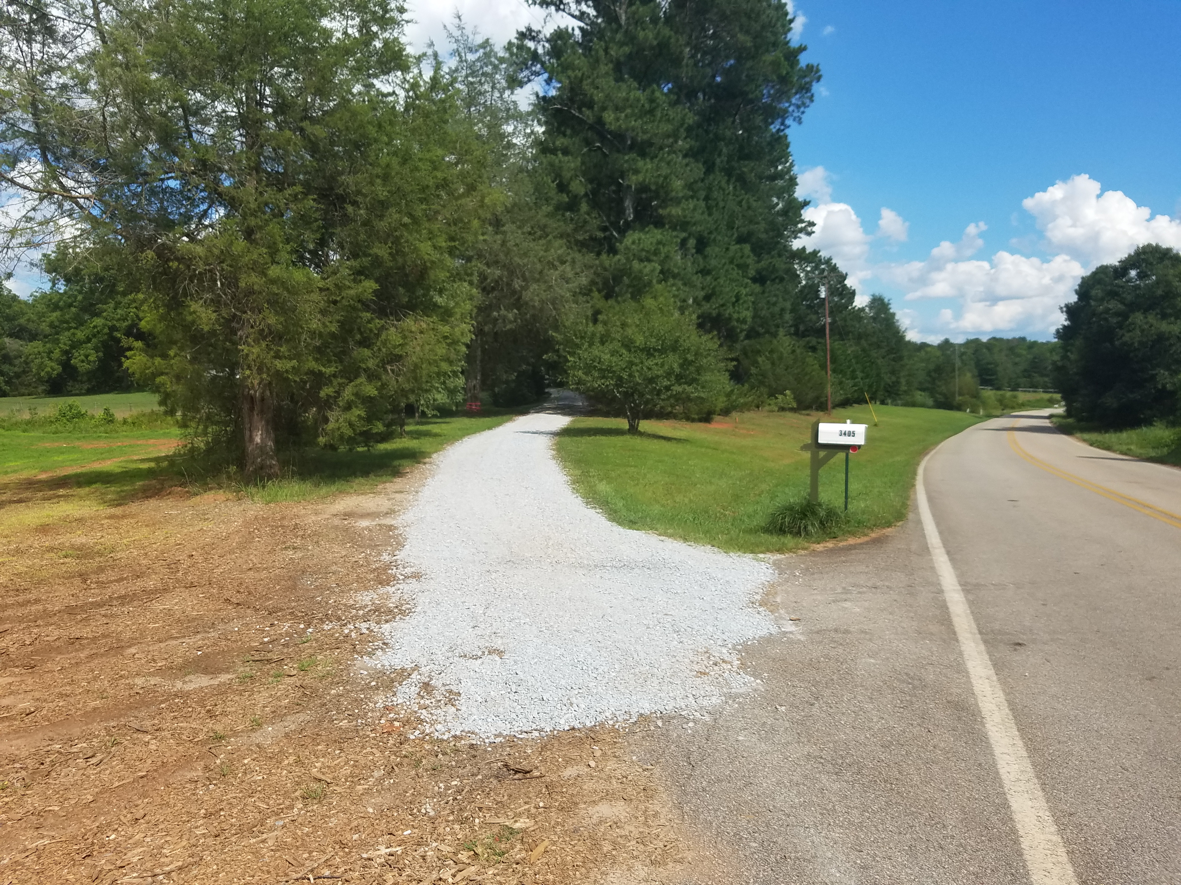 I'm in the middle of doing a driveway myself, but using crushed up asphalt millings. I've cut a new driveway through the woods to lead to our rental house, rather than them driving up past our house and in front of the shop. I think 2-3 more loads will finish it up, it's about 600' long. Here it is drawn in red.