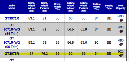 Thank you for the info Jobro. Very helpful. I got a really good deal for a brand New Garrett GT3076R .82 A/R. Size is below. I can always change exhaust housing if needed. See any complications with that?