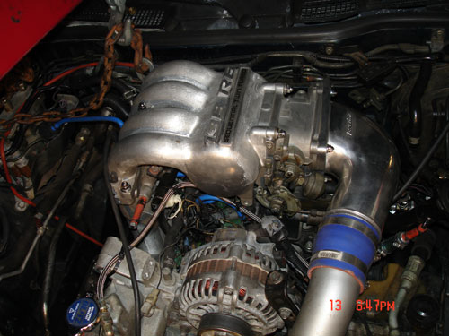 well lets see, to start, since you are going to be using a T78 turbo then this makes things much easier, you can scrap your whole rats nest and keep like a few silinoids, plan on buying some silicone vacume lines ($60?), and for that size of a turbo it would be pointless to run low boost levels and at like 18psi you will have over 650hp so you will need to buy some fuel injectors to feed the hp, like 850cc primarys (free from FD) and 1600cc secondarys (around $200 to $300) and maybey more injectors for more boost, a turbo 2 primary fuel rail ($15? from junk yard) you will need o-rings and spacers for your injectors (cheep[make sure they are fuel safe] ) you will need something to seal the hole in the TB if you use the FD TB like me (RTV or JB Weld $10?) you will need to make or buy block of plate(s) ($15?), and like R-Magic said he ported his intake ports, if you dont do this then it is almost pointless using these manifolds unless you are looking just for short runners. ($yourself - $expensive) and you can either re-route your throttle cable or get a custom one made ($0 - $50?) and you cannot use your cruise control cable unless you get a custom cable made ($0-$40?) if you use the 20B TB then i dont know about the TPS sensor plug fitting & working with your harness but also something to think about, and also the gaskets you will need to make or have made for the manifolds ($15 or so) and then the oil fill neck issue, what i did was cut it in half and then re-welded it at the right degree rotation. ($?) ohh and you will need to lengthen your fuel temp sensor wires, (?) man its just really hard to put a price on things when i dont know your skill levels and what tools and supplys you have but i hope this is a good start.