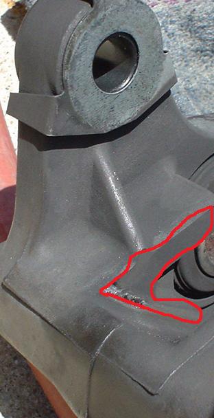 The area is the lower inner surface near the lower attaching point. It is marked in red. Had to remove at lease .010".