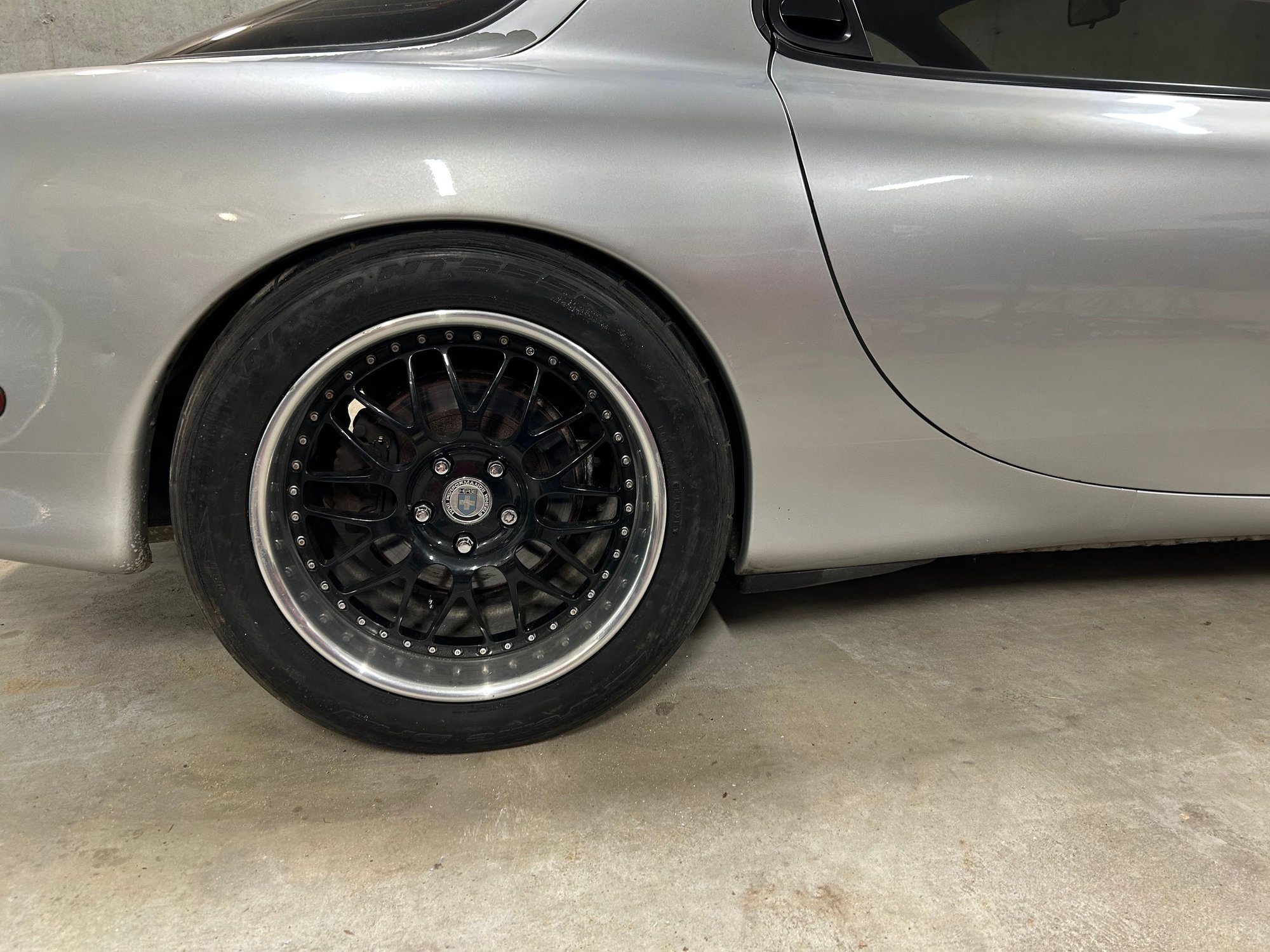 The HRE wheels were setup for a Supra and the rear tires at too tall for a FD at 27.6” 305/40/18 Nitto Drag radials. Fronts have stretched 245/35/18 tires that are worn out. So I will be replacing all the tires.