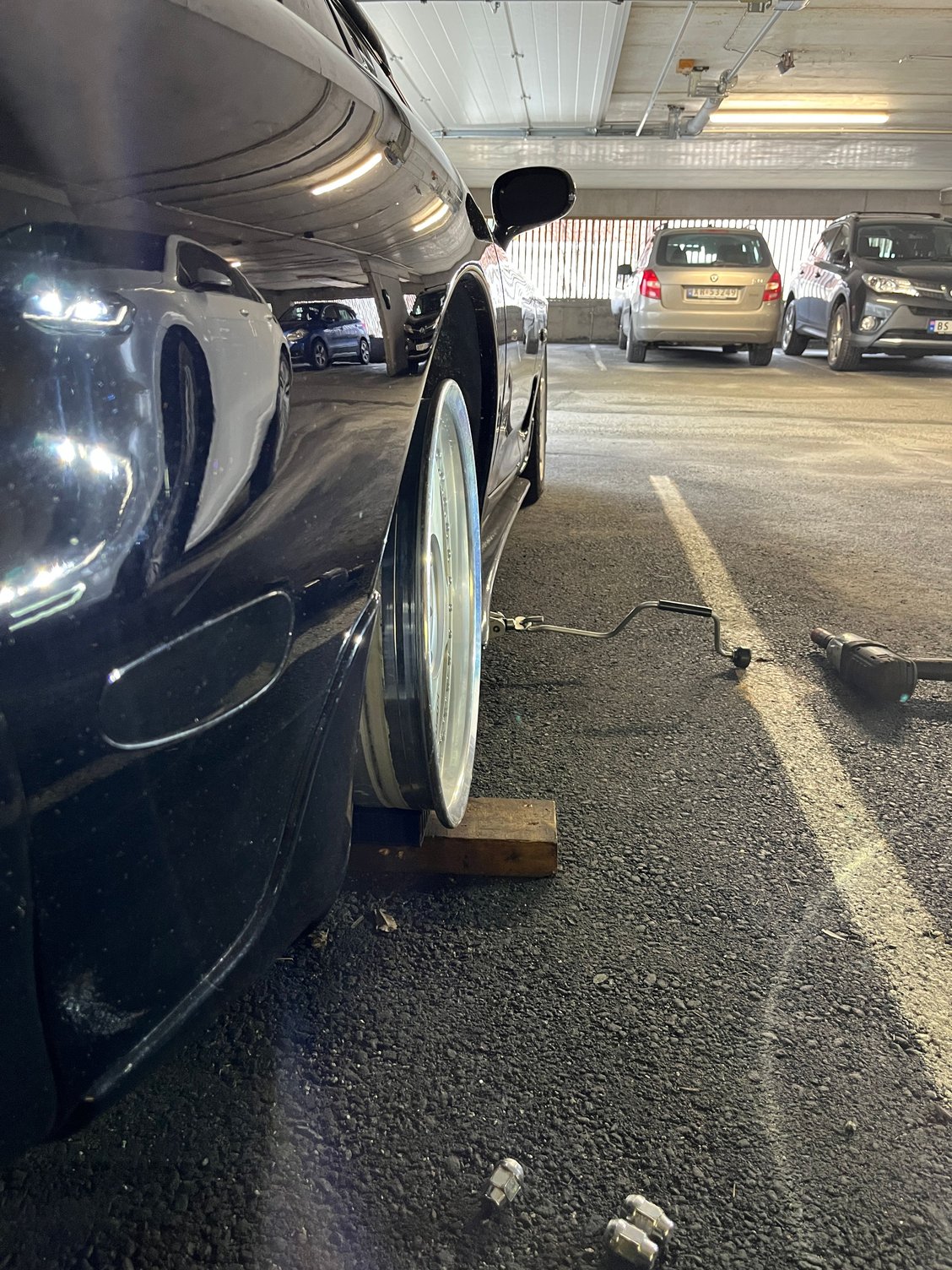 Haven’t gotten to do a test fit on the ground yet of the HREs as they have the Supra hub center bore of 60.1mm and I still need to open it up to 67.1mm.