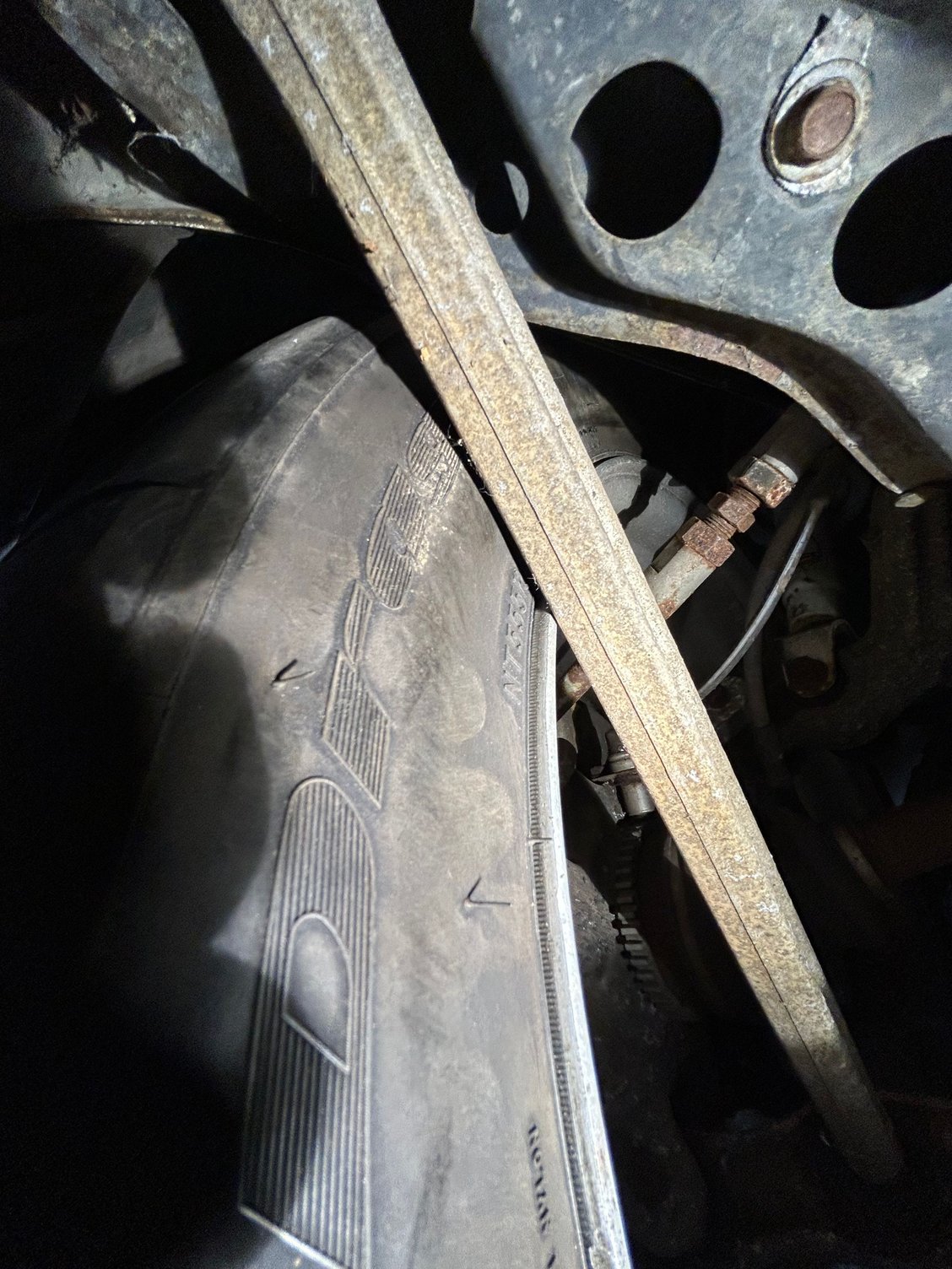 Seems possible the 315 Falkens could fit. Being only .150” of addition section width on each side. The 11” rim of course is hitting the stock trailing arms, almost touching the stock swap bar end link and is very close to the Tokico struts. I will post some pictures of the conflicts below.