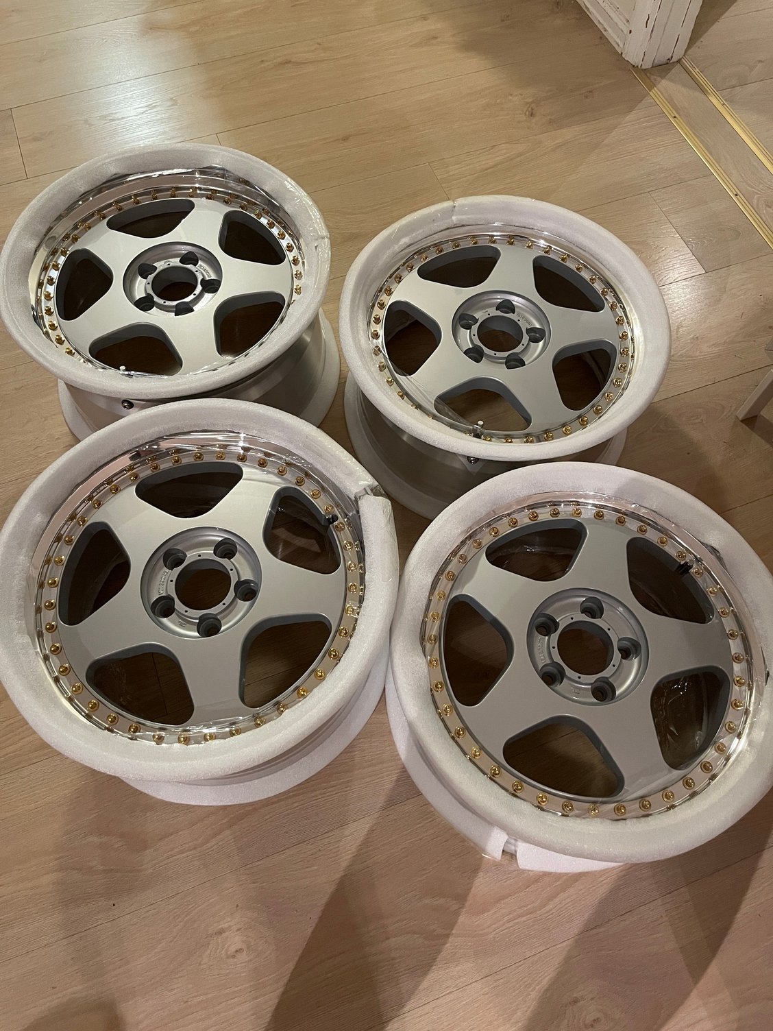 The wheels are staggered, fronts are 18x9.5 + 15 and rears are 18x10.5 +15. I currently have 255/35s mounted up which are clearly way too large up front.