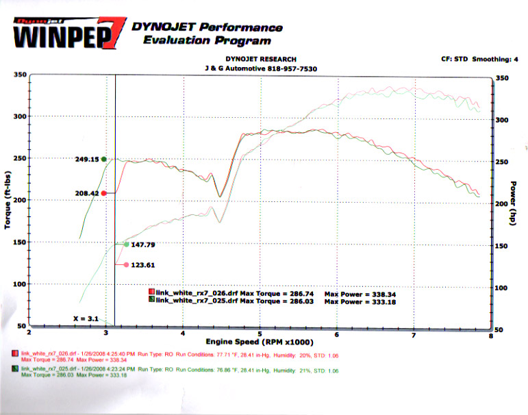 BTW, I checked out your thread about your V-mount install... thanks for the great documentation!Here's mine. 338 whp @ 14psi. pumped fuel. 10.7 A/F