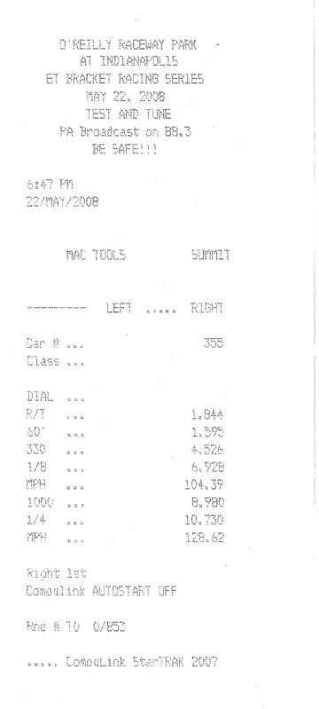The last run was looking better with a 1.89 60ft but the clutch started slipping in 2nd 3rd 4th and ran a 11.94 at 120.19!