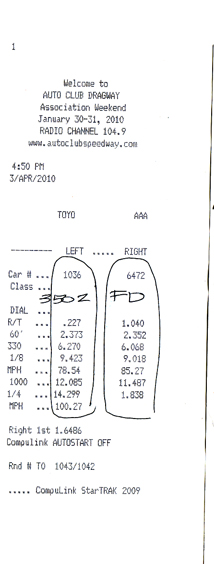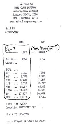 Time Slips and Dyno Section is for posting 1/4 mile time slips and dyno graphs