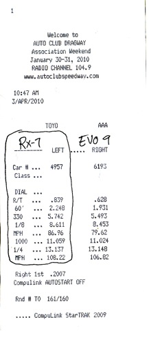 Yup, that's one healthy stock twin car... I always told her it was faster than mine. 114 is nice trap for stock twins semi-daily beaten, still sequential too.