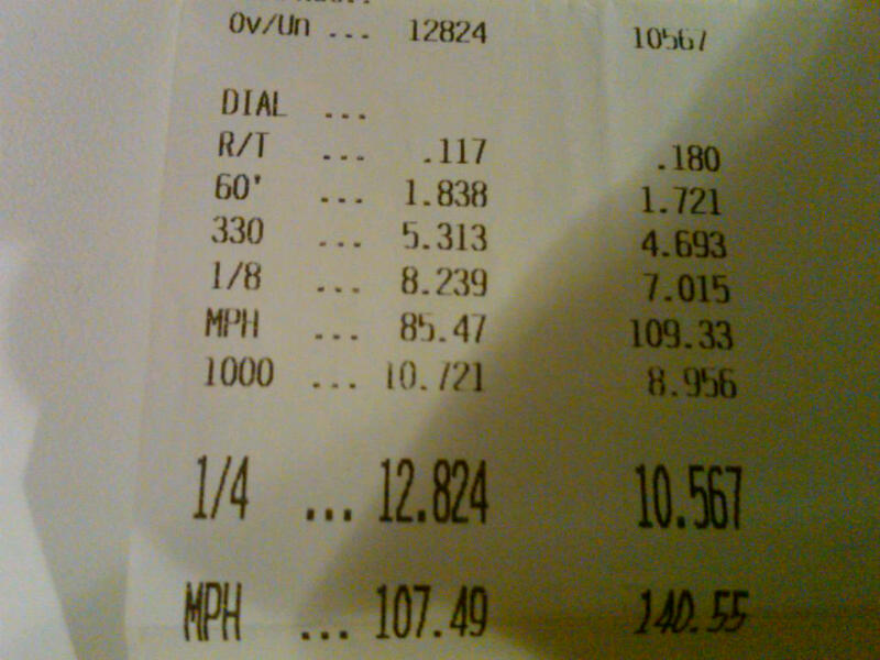 Your car did a 12.8 @ 114 back around 2005 with the same setup. =D