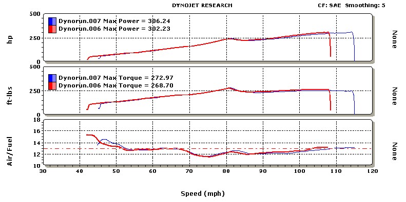 Speaking of something not being right, the torque I listed above is wrong. It was about 285 ft/lbs and on the 324 run and I had 680cc in the primary. Thanks to Bill Gates I don't have the 324 hp run any more (see below), but here is a copy of a couple earlier runs.
