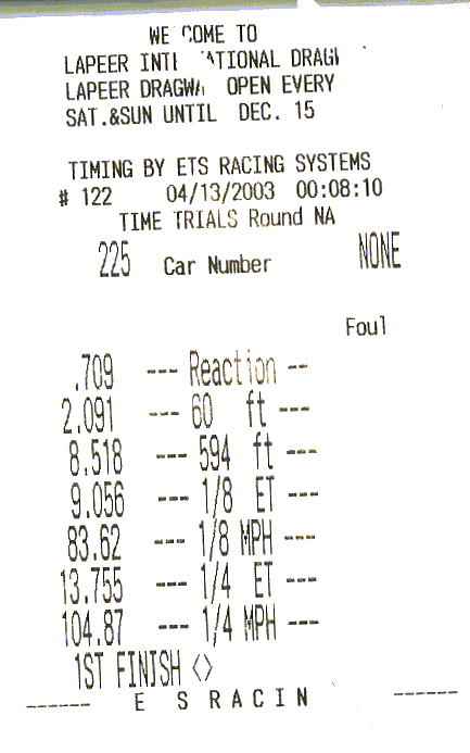 Sadly this was against a new Pontiac Grand Prix GTP supercharged. He ran a 9.349 1/8 and a 14.492 1/4.