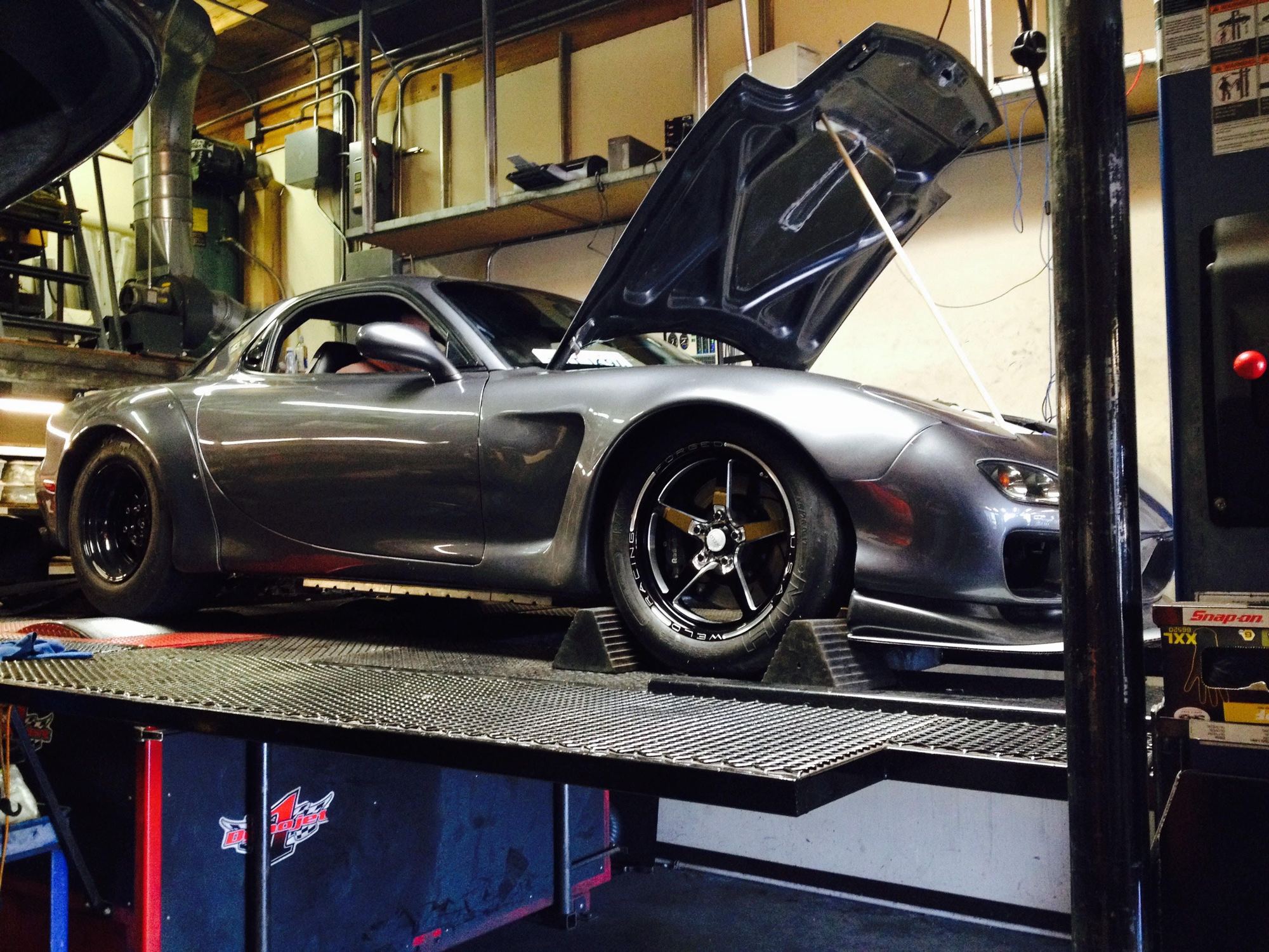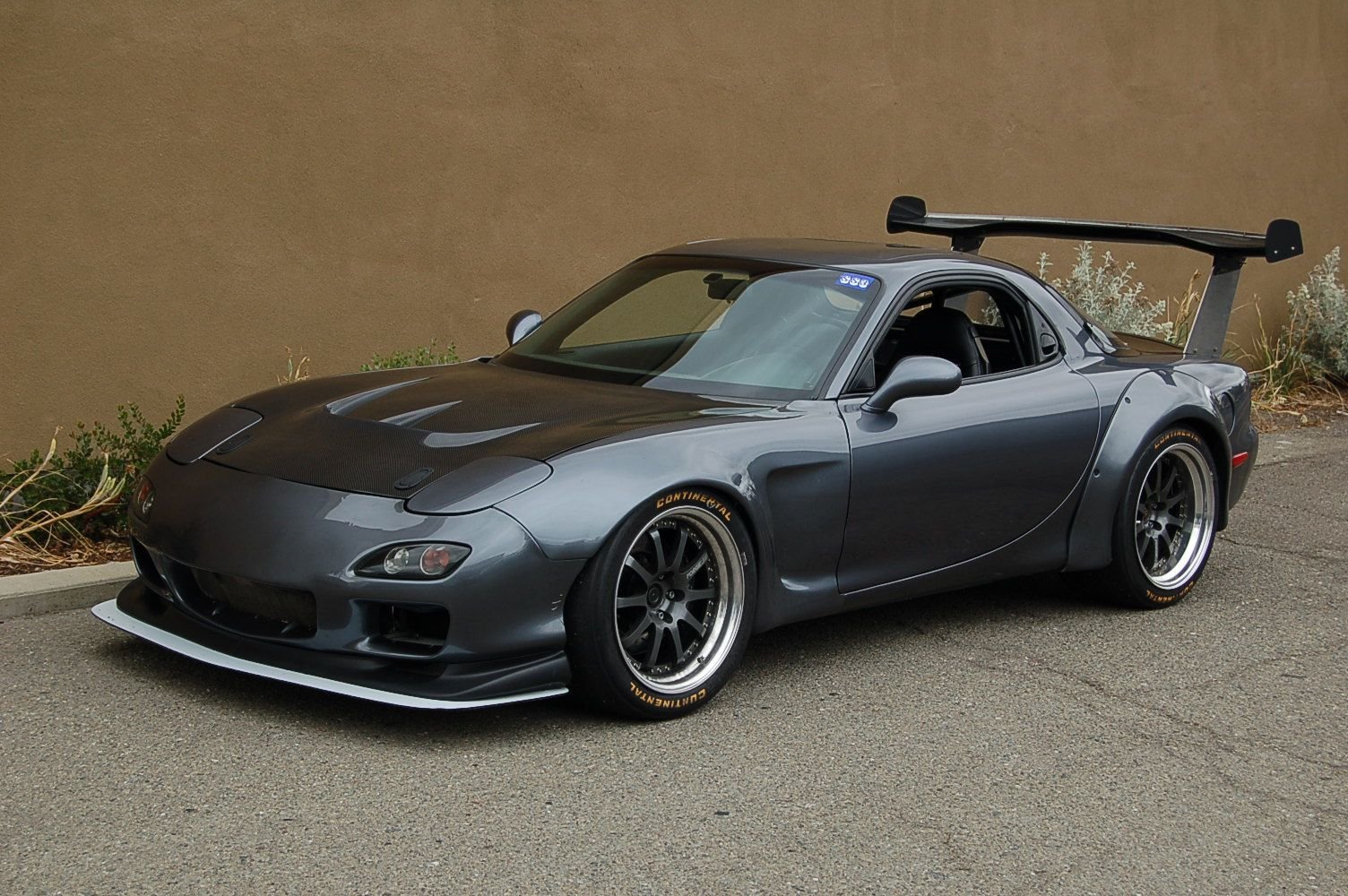 Once I sold it I bought yet another super clean silver FD around 2006 for something like $6500 with a low compression rotor in one housing and drove it home like that about 40 miles even over the Golden Gate bridge and made it back to SF. Yanked the motor and added a cam/headers only LS7 making 520rwhp to it with a Holley HP EFI around 2008/9 which were very hard to get, did wide body, T56 Magnum, 8.8" Cobra IRS swap, much nicer interior, Mitsu Evo gray paint (paint jail forever), which took a few years to complete the car and here it is! Still own it about 19 years later. I sold the rear wing/CF hatch/lexan window setup which I rocked for a few years... then added about 40lbs of insulation/heat shield and a stock rear hatch to make it more comfortable to drive on the street. 315 front and 335 rear! Sold the LS7 as the factory dry sump really is a gimmick and not great for racing and did a 12:1 416 with small bore LS7 heads currently.