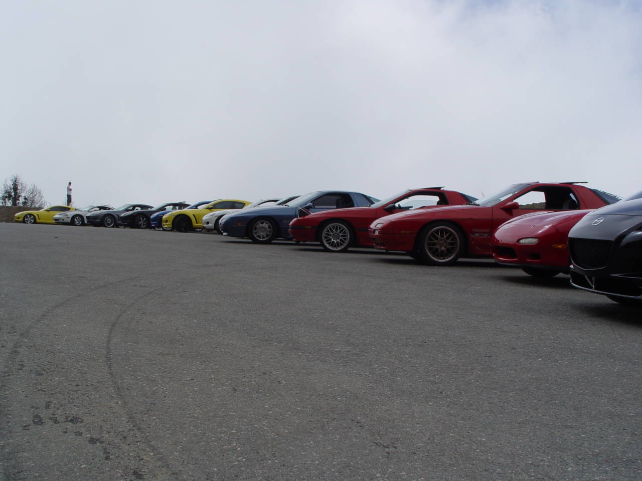 Lotus Elise, Fiat roadster,Evo,STi,2 WRX,S2000,5 miata and one of them with turbo, 2 240z,2 ae86,rx7. Soooooooo much fun